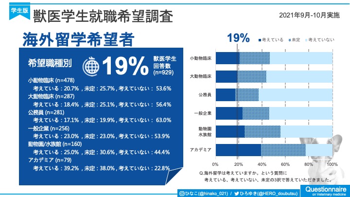【獣医学生が回答】博士号取得/海外留学するきある?? 2023.04.07 FOCUS データで見る小動物臨床医 929名の獣医学生に『博士号取得希望』『海外留学希望』について質問してみました。 【質問1】博士号の取得を考えていますか? 【質問2】海外留学は考えていますか? この職業実態調査は2021年に麻布大学の鈴木皓之さんと北海道大学の鍛治ひな子さんが共同で実施したものです。